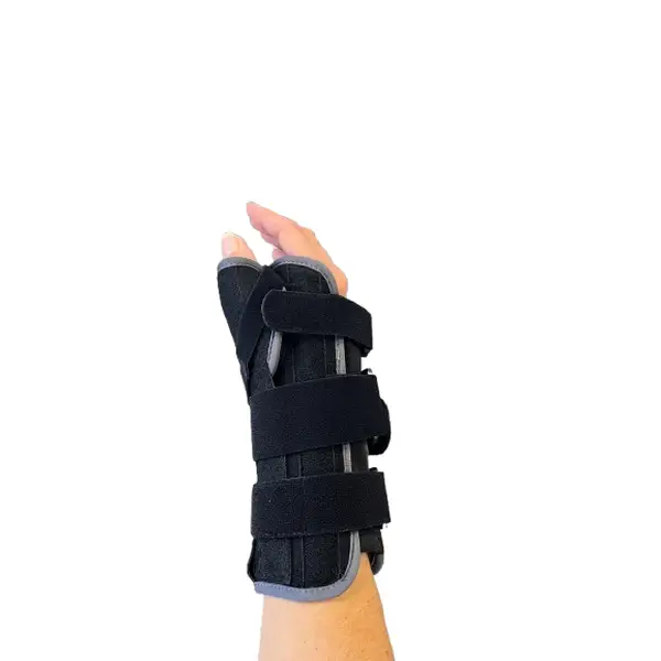 Présence d’une éclisse palmaire, de 2 baleines latérales limitant les mouvements du poignet et stabilisant l’articulation du pouce